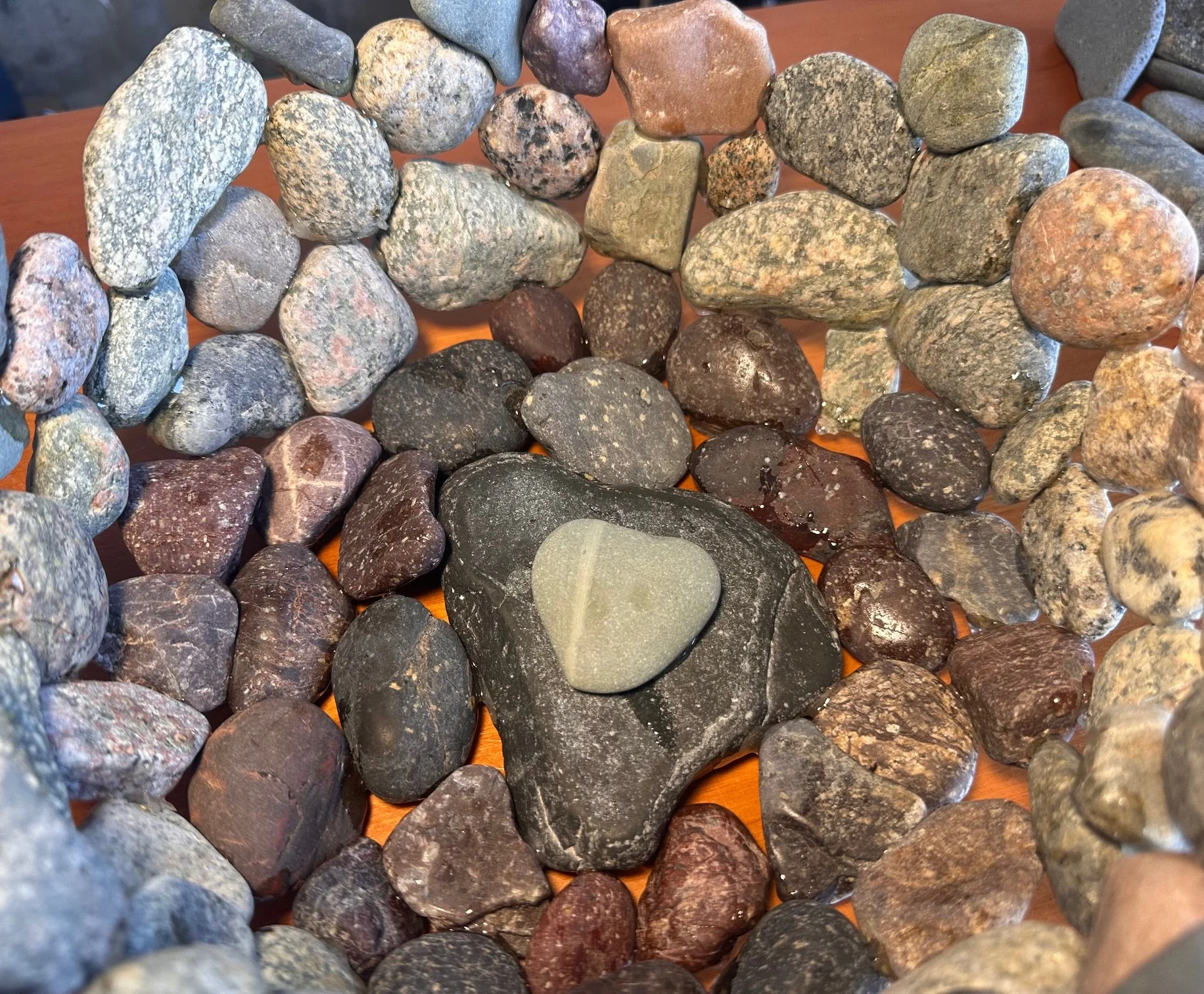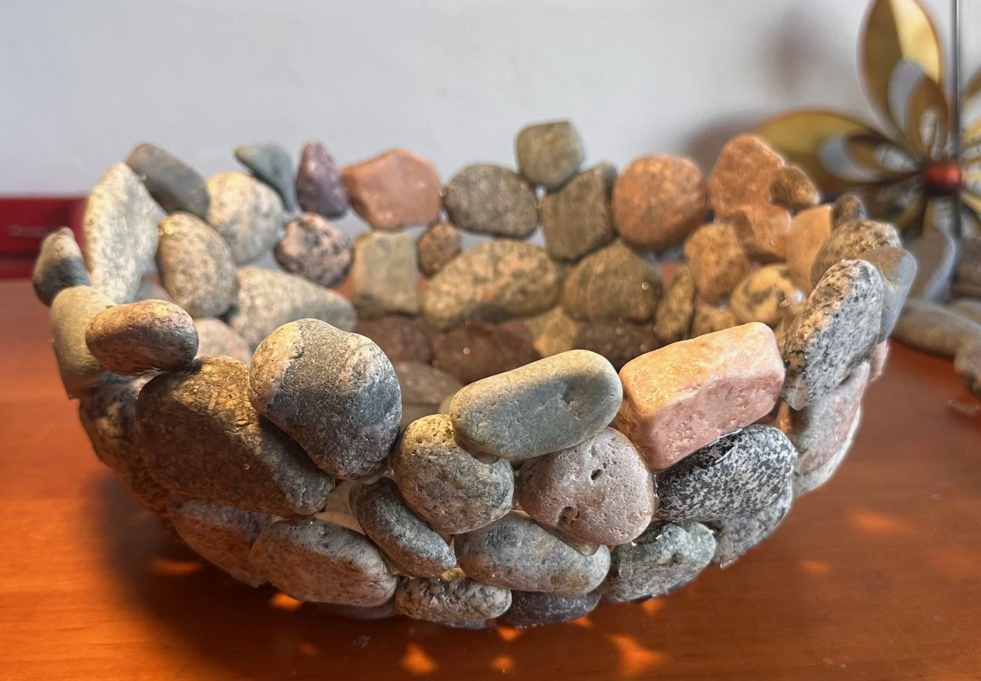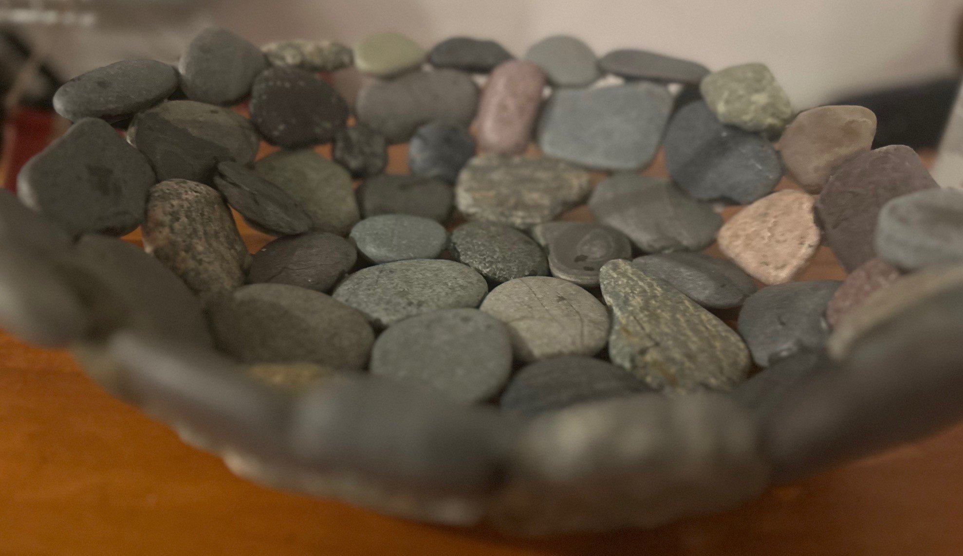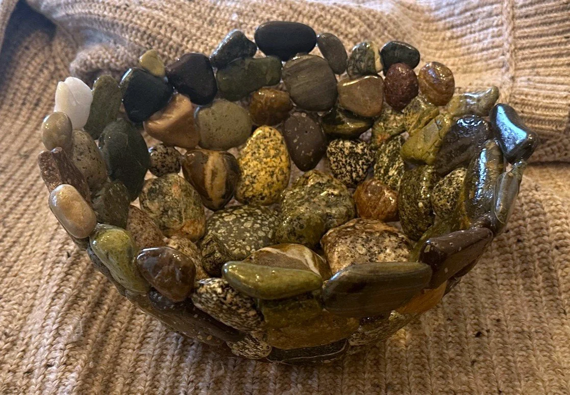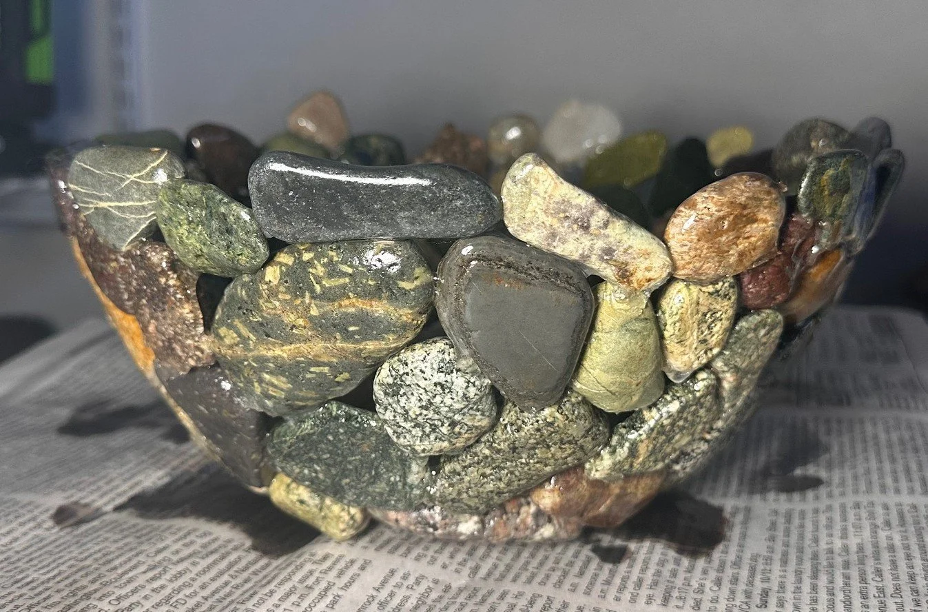 Stoney Beach Bowls are handcrafted from beach stones gathered along Nantasket Beach in Hull, Massachusetts — a shoreline shaped by centuries of tide, storm, and shifting sand. Each bowl is made to order, carefully composed from the most interesting and colorful stones the beach offers, with custom color palettes available by request. No two bowls are the same; each reflects the texture, weight, and history of New England’s stony coast, where granite, quartz, and sea-worn fragments tell a story of endurance and place. These are not mass-produced objects, but slow, deliberate pieces — shaped by hand, rooted in the shore, and made to be held.