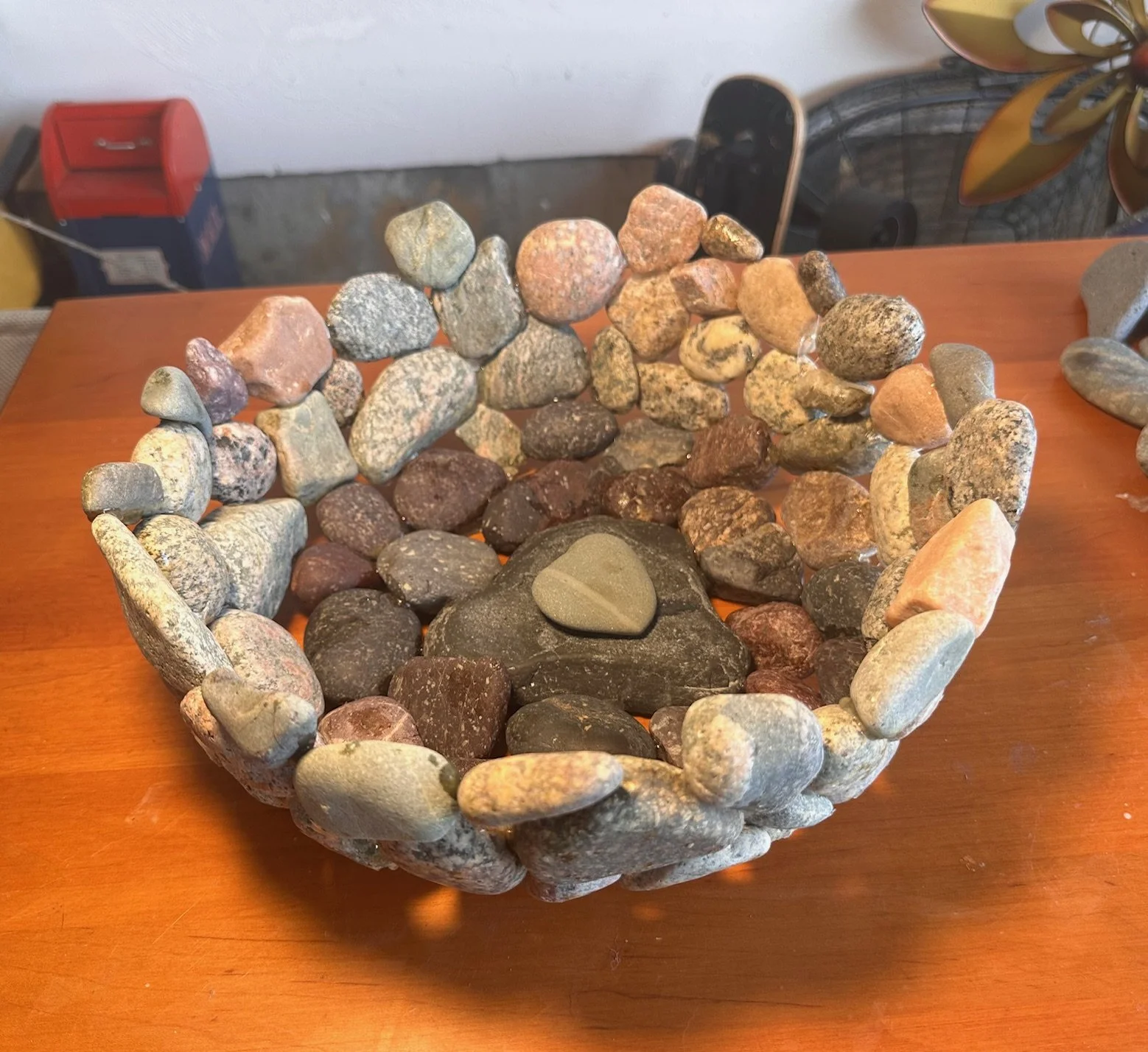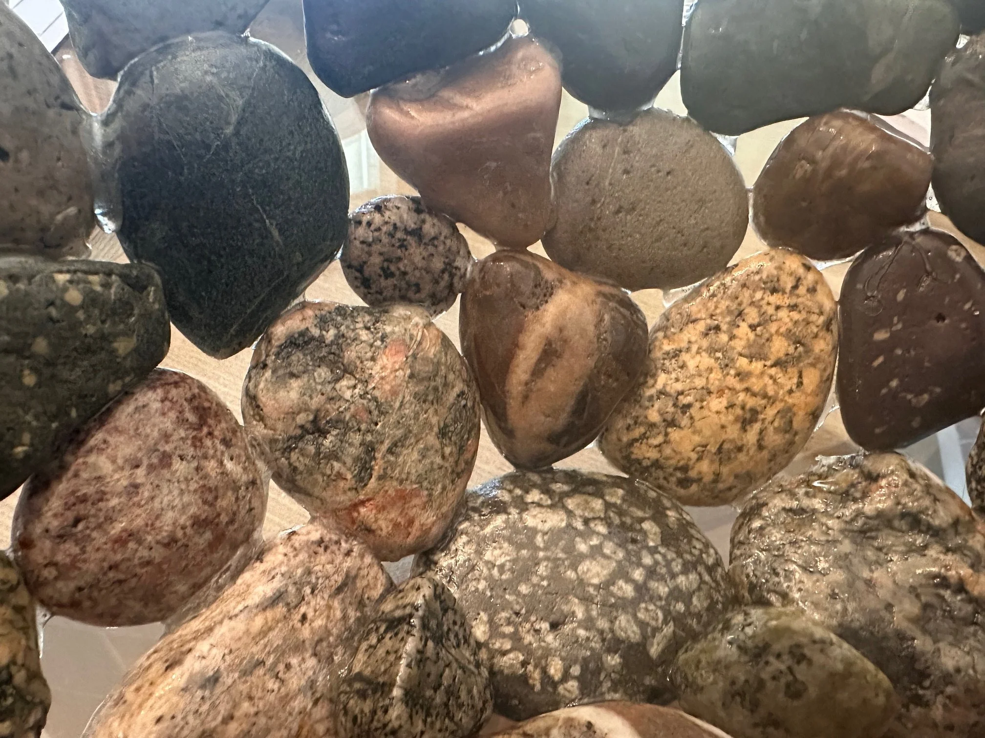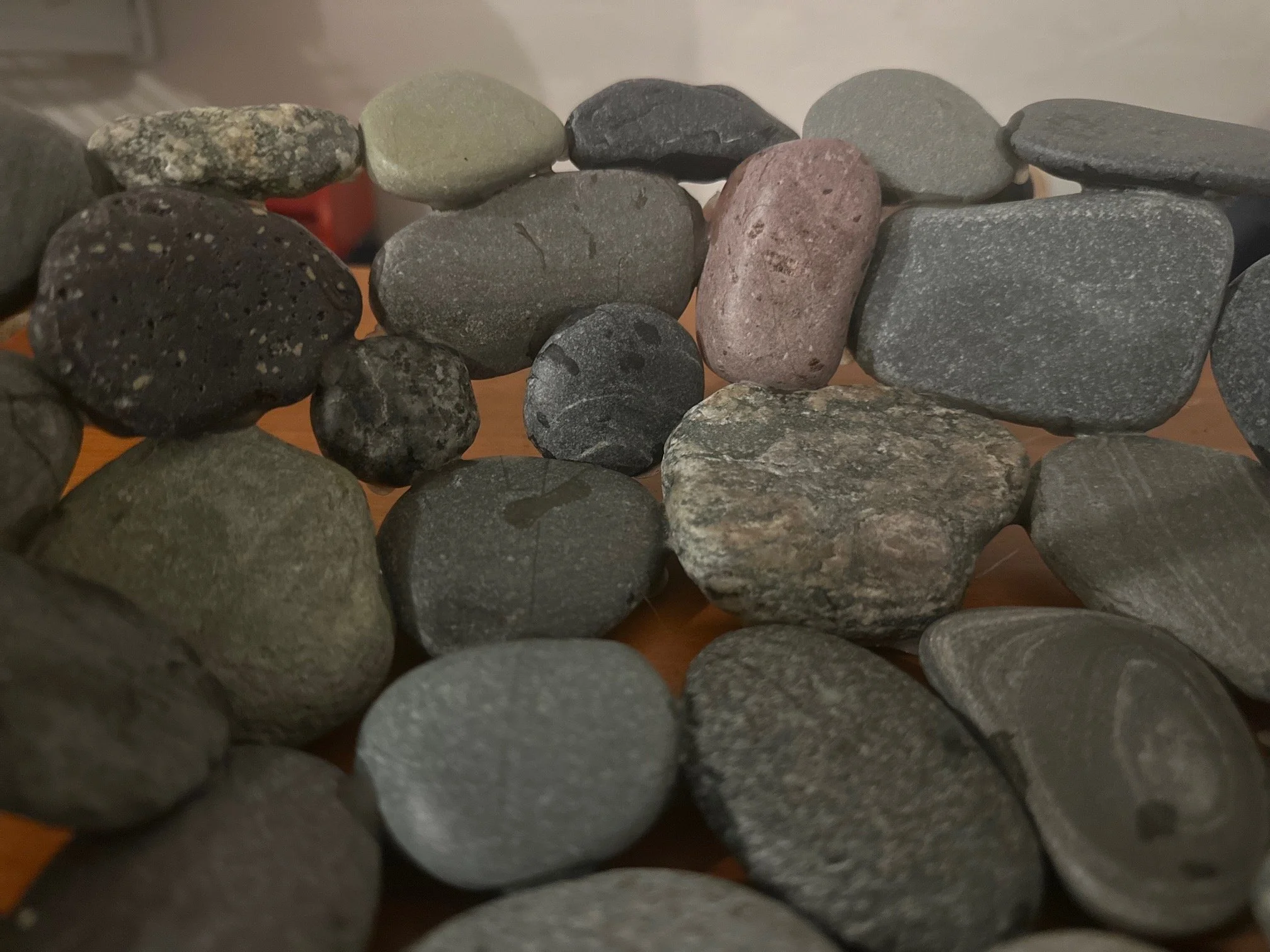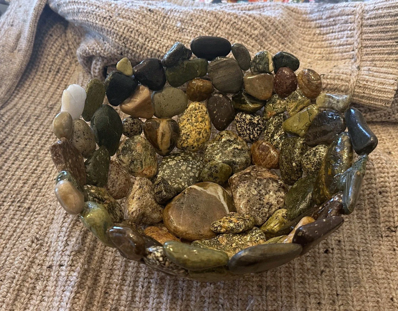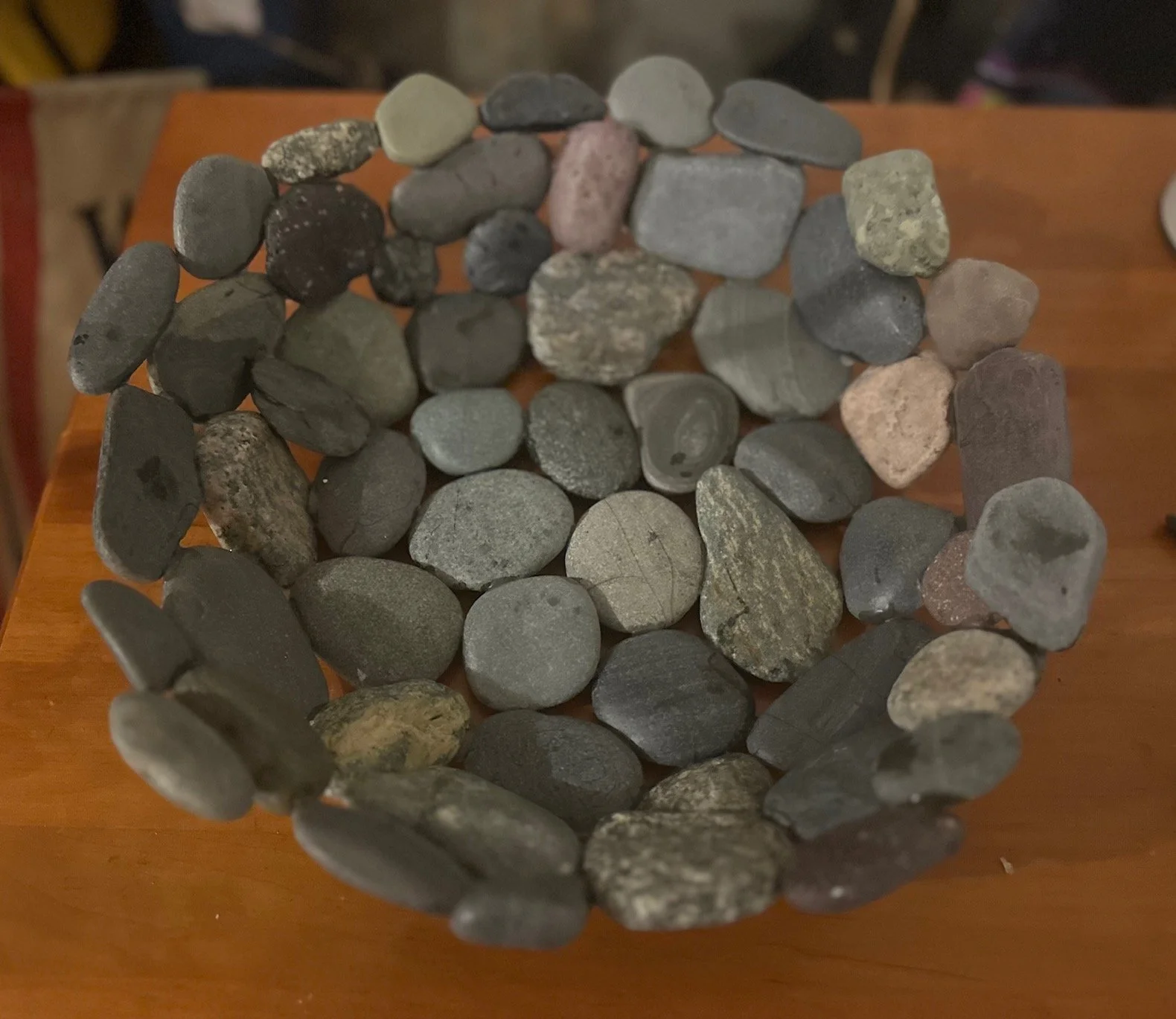 Stoney Beach Bowls are handcrafted from beach stones gathered along Nantasket Beach in Hull, Massachusetts — a shoreline shaped by centuries of tide, storm, and shifting sand. Each bowl is made to order, carefully composed from the most interesting and colorful stones the beach offers, with custom color palettes available by request. No two bowls are the same; each reflects the texture, weight, and history of New England’s stony coast, where granite, quartz, and sea-worn fragments tell a story of endurance and place. These are not mass-produced objects, but slow, deliberate pieces — shaped by hand, rooted in the shore, and made to be held.